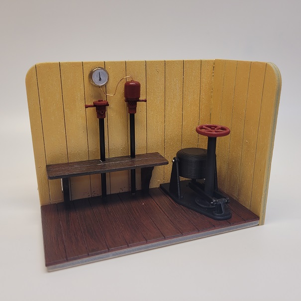 The kit contains all the parts you would typically find in a vacuum brake fitted guard’s van. These being a brake valve, vacuum gauge, handbrake and vacuum brake cylinder. The contents of the kit is based on the contents of the Ffestiniog Railway’s Van 5 and 6.